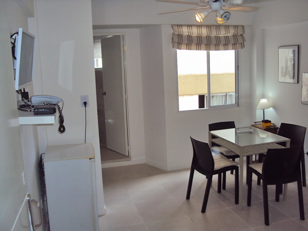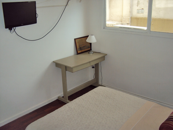 Dpto de 2 ambientes ubicado en la calle Uruguay 850, en el barrio de Recoleta. Recién pintado y amoblado a nuevo. En la habitacion cuenta con 2 camas singles, tv, gran placard y vista al contrafrente. Living con cama simple, tv, mesa para 4 comensales, wifi y kitchenette equipada con anafe eléctrico, microondas y horno. Muy luminoso y agradable. Apto para 3 personas. Alquiler mensual $30.000, con todos los servicios incluidos.