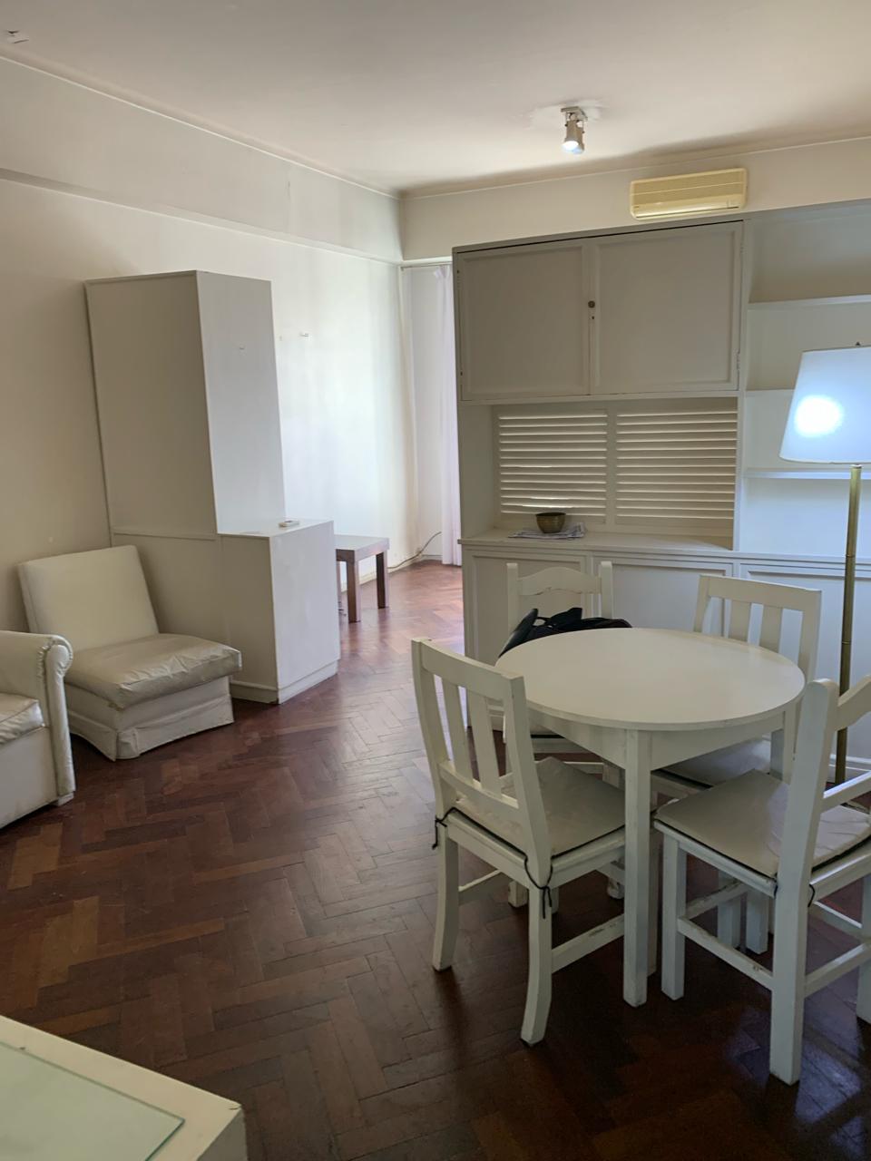 Muy lindo depto. monoambiente con división de 55 m2 al frente. Calle Junin al 1000 piso 6to casi esquina Av. Santa Fe. Excelente zona, a media cuadra de la Facultad de Medicina. Posee una cama doble y un sofacama, mesa con sillas, elementos de cocina aire acondicionado y wifi. (Maximo 2 personas) excelente estado. Totalmente amoblado y con todas las comodidades. Cocina separada y baño completo. Muy luminoso. Alquiler mensual $550.000, gastos a cargo del inquilino, Expensas $110.000, Luz $5.000, gas $4.500, agua $18.000 y Agip $16.000.