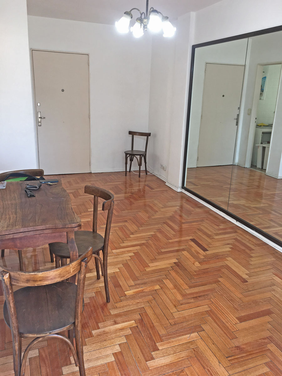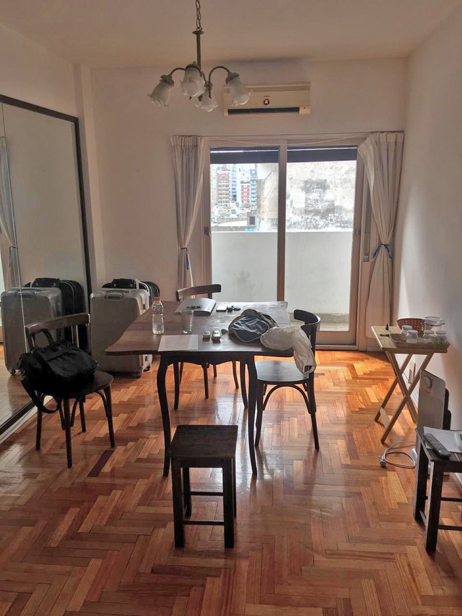 Departamento de 3 ambientes ubicado en calle Ayacucho al 1700, en el barrio de Recoleta. Es un piso 4° al contrafrente. Vista abierta y muy luminoso. Capacidad maxima 5 personas (Posibilidad de agregar camas). A metros del shopping Recoleta Mall y del cementerio de Recoleta. A una cuadra de la Av. Las Heras y de Av. Callao. Muchos medios de transporte en la zona. Alquiler mensual $34.000, con todos los servicios incluidos.
