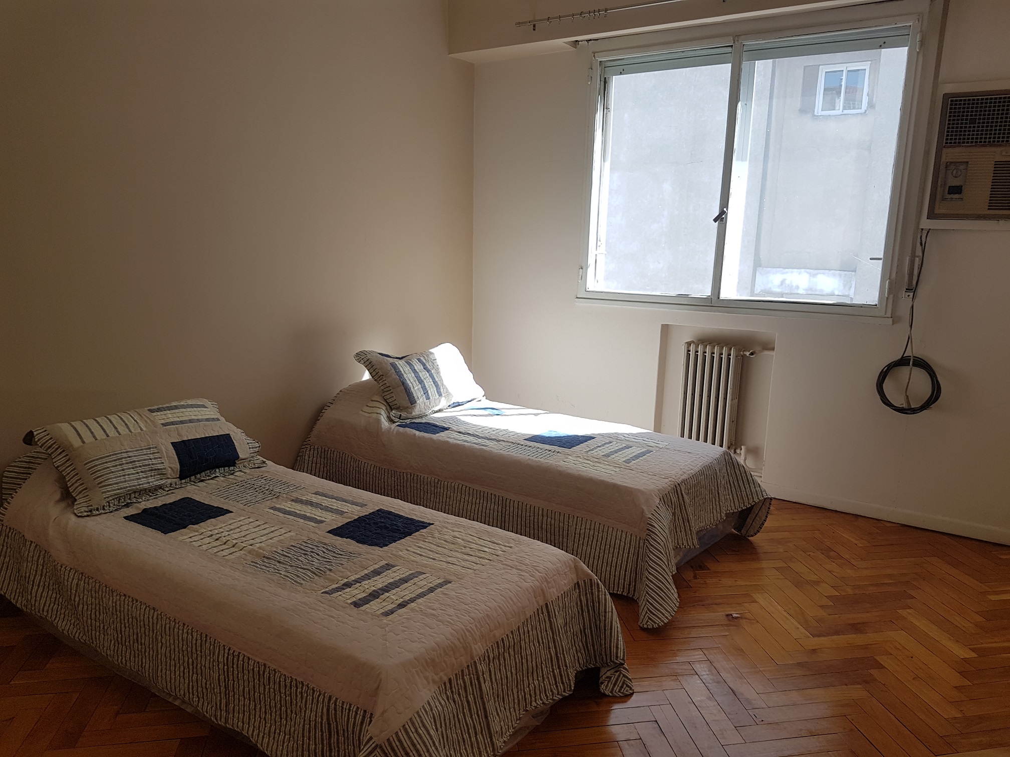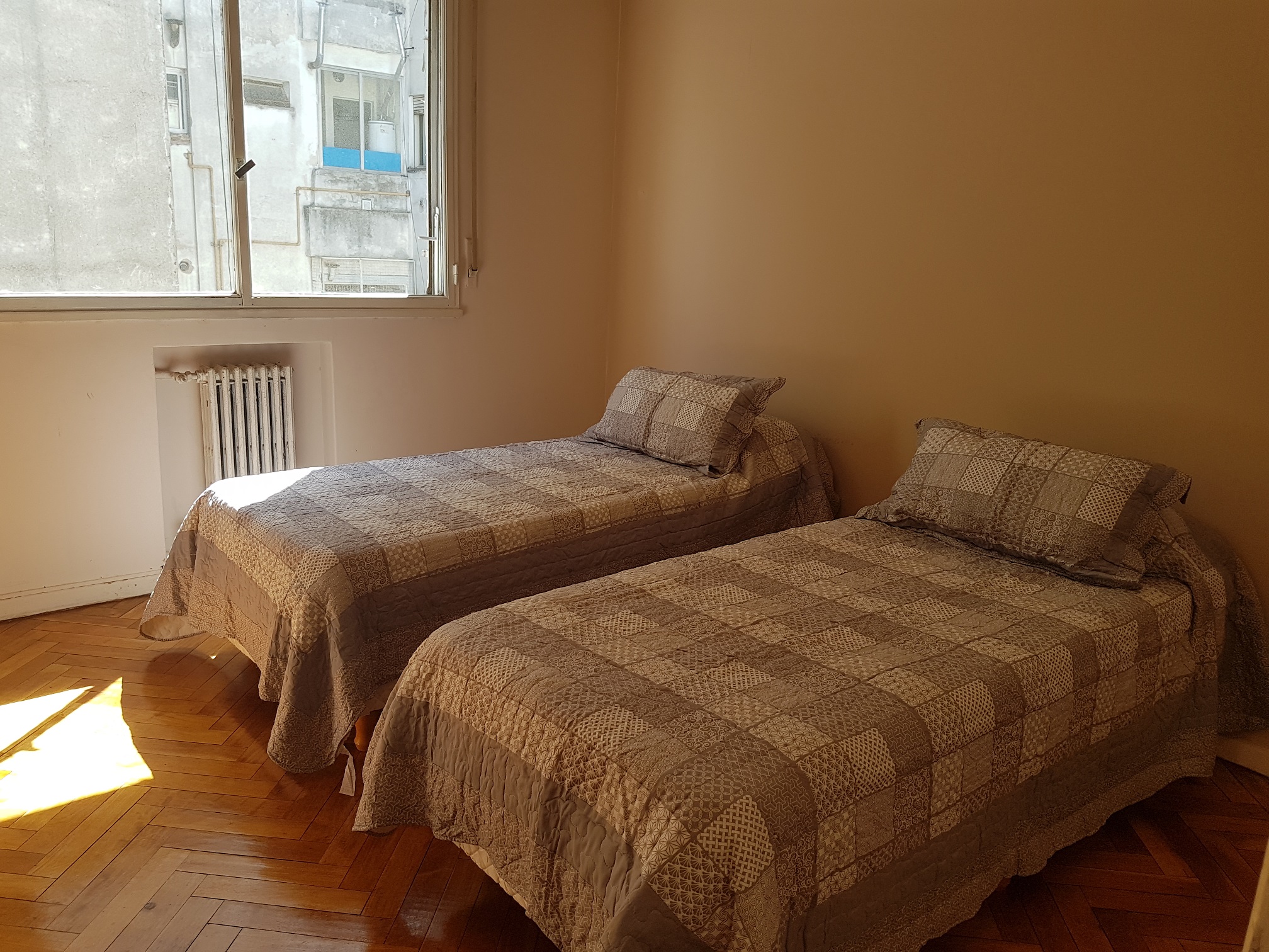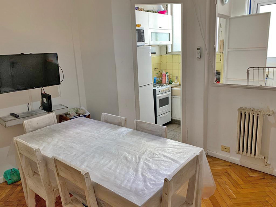 Dpto. de 3 ambientes (2 dormitorios + escritorio/dormitorio pequeño) ubicado en la calle Montevideo 600. Piso 6° al contrafrente. SILENCIOSO. Totalmente amoblado. Cuenta con 3 equipos de aire acondicionado para todos los ambientes, lavarropas, heladera con freezer, calefacción central, tv LCD y wifi. A tres cuadras de la Facultad de Medicina de la UBA. Capacidad máxima 5 personas. Alquiler mensual $150.000, + gastos de $20.000 mensuales por los servicios. Excelente estado.