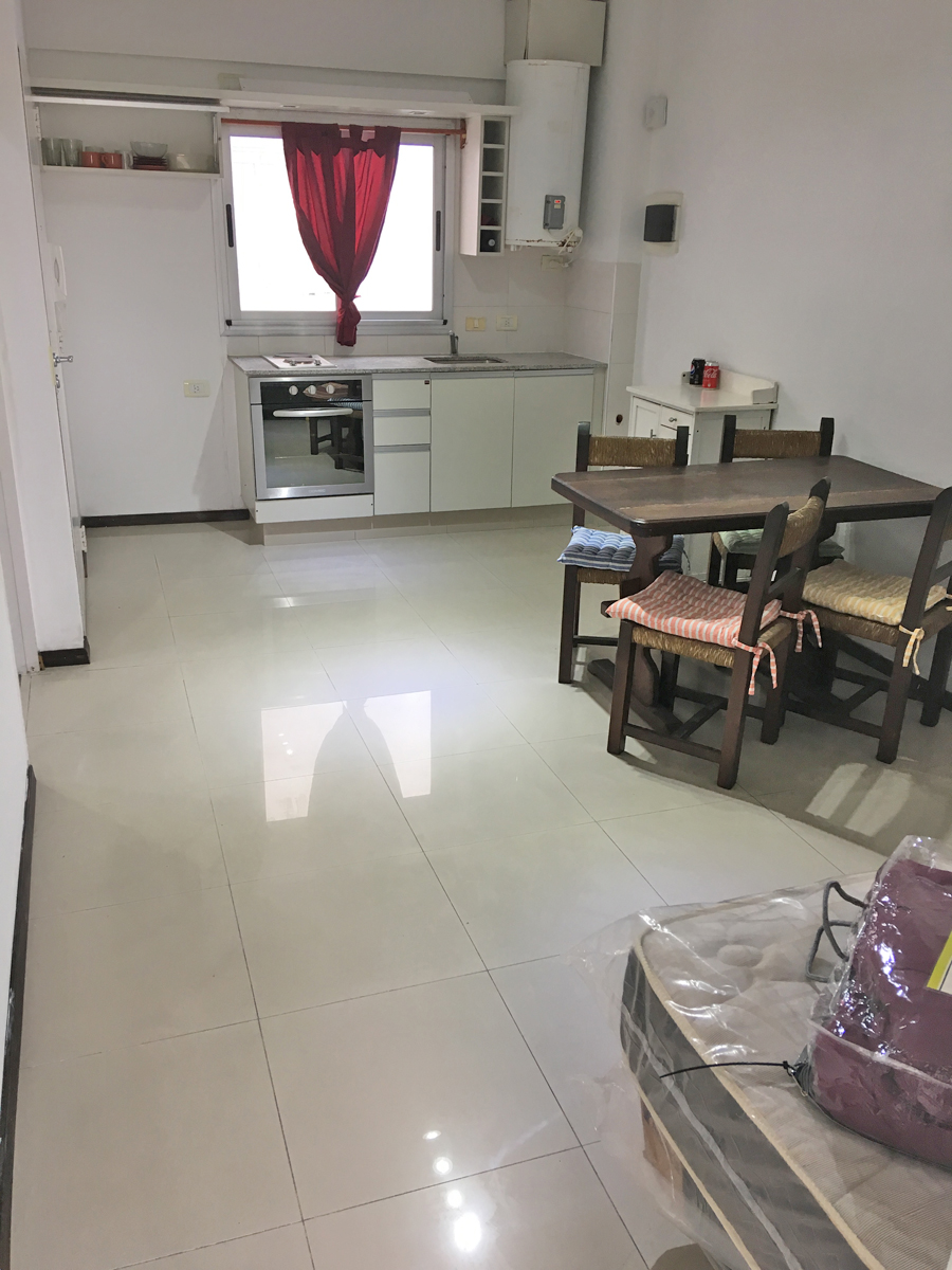 Dpto de 2 ambientes ubicado en calle Pringles al 200, en el barrio de Villa Crespo. Es un piso 4° con balcon al contrafrente. Totalmente amoblado. Cuenta con dos camas singles en la habitacion y otra cama single en el living (Todas a estrenar. Mesa y silla para 4 personas, cocina equipada. Apto para 3 personas. Alquiler mensual $30.000, con todos los servicios ya incluidos.