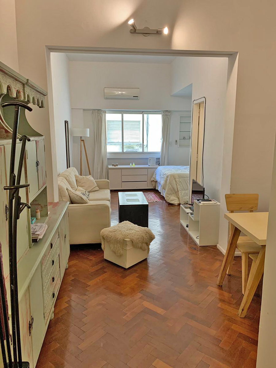 Dpto. monoambiente de 30 m2 en calle Pacheco de Melo al 1900, en Barrio Norte. Es un 3° piso al contrafrente. Luminoso. Totalmente amoblado. Apto para 2 personas. Cama doble, sillon, televisor lcd, aire acondicionado, wifi. Alquiler mensual $25.500, con todos los servicios incluidos.